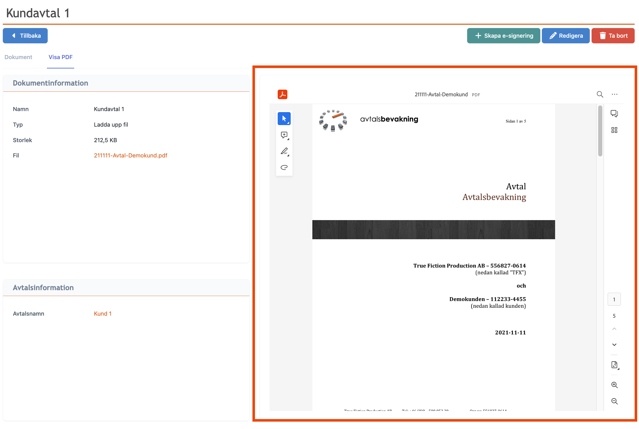 Det går nu att visa en pdf direkt i Avtalsbevakning istället för att först behöva ladda ner och öppna den från datorn. Detta underlättar hanteringen av dokument och gör att man snabbt kommer åt även innehållet. För att komma till sidan som visar dokumentet, klicka på ikonen i form av…